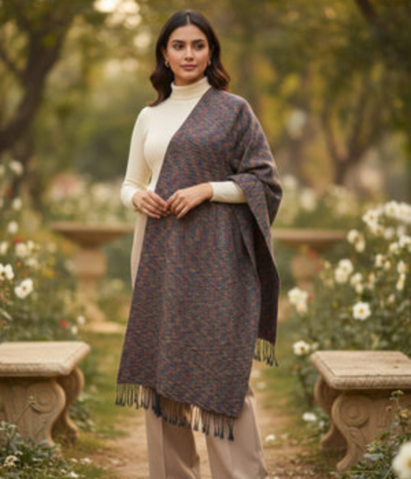 An elegant brown winter shawl crafted from soft, warm fabric for seasonal comfort. Designed for versatile compatibility, it layers effortlessly over kurtas, suits, and coats, making it ideal for daily wear, casual outings, and winter gatherings.
